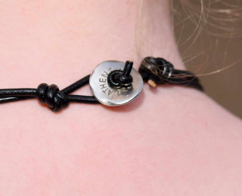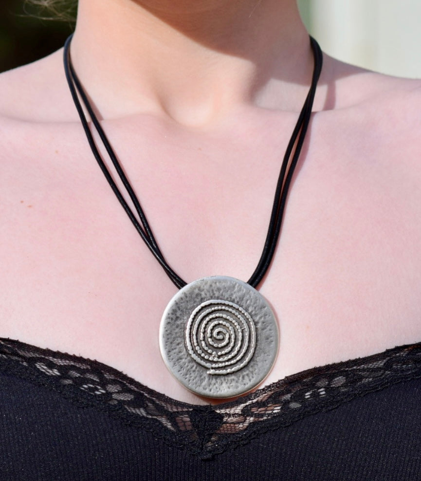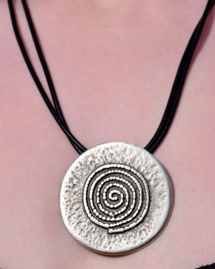 An elegant ammonite themed necklace will add that final touch to your outfit. This double woven leather design will make a worthy addition to your collection of designer accessories and will leave you spellbound while pairing this dazzling casual silver coloured necklace with a nice pair of earrings to complete your look.