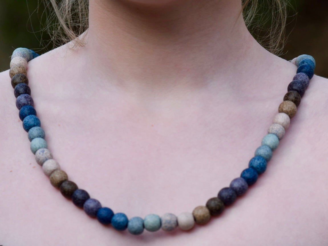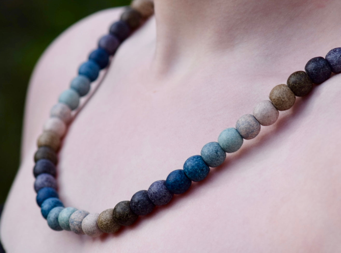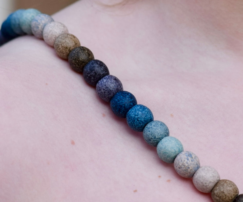 A hand made ceramic bead necklace that will add that final touch to your outfit. This small bead design will make a worthy addition to your collection of designer accessories and will leave you spellbound while pairing this sea coloured themed necklace with a nice pair of earrings to complete your look.