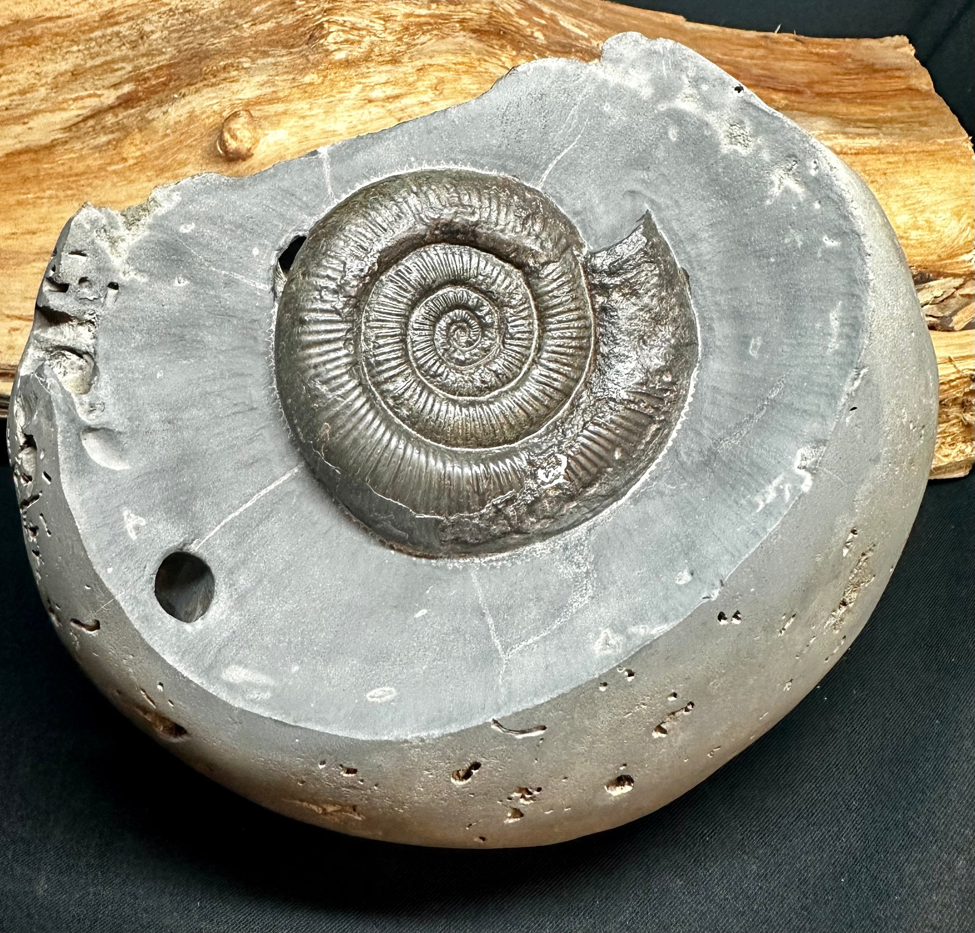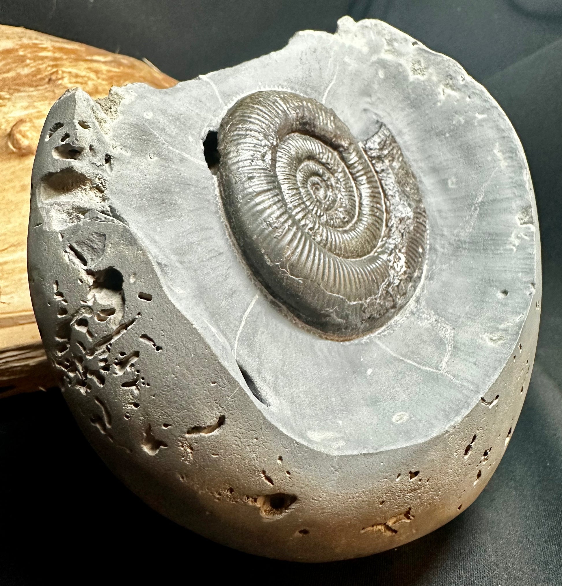 A well preserved and beautifully prepare bowled out example of this classic British ammonite within the original rock matrix. Found:- Tenuicostatum Zone, Upper Lias, Lower Jurassic, Kettleness, Nr. Whitby, North Yorkshire, England. Age:- 180 Million Years Old Ammonite Size = 70 mm nodule size 150 mm x 130 mm