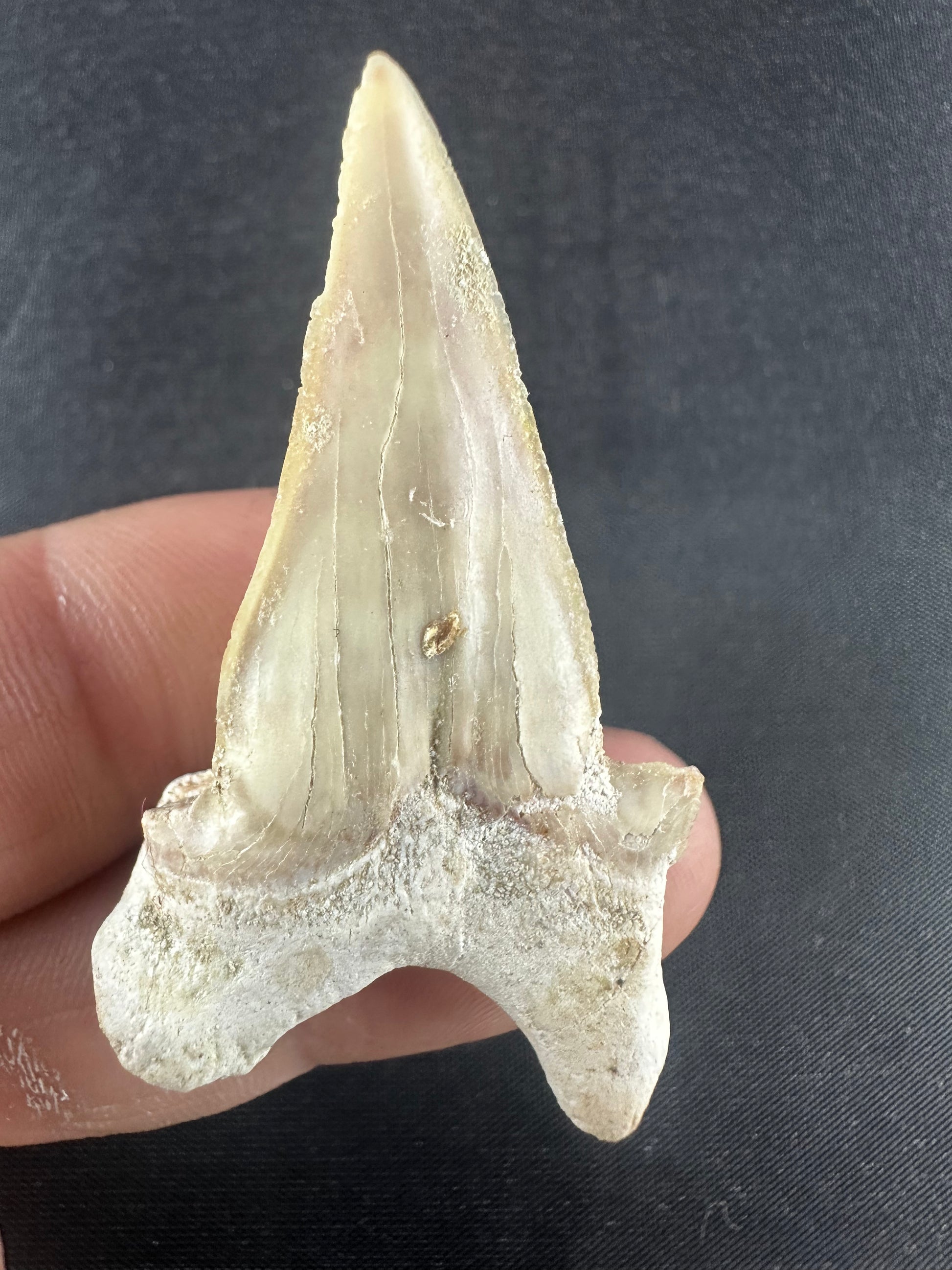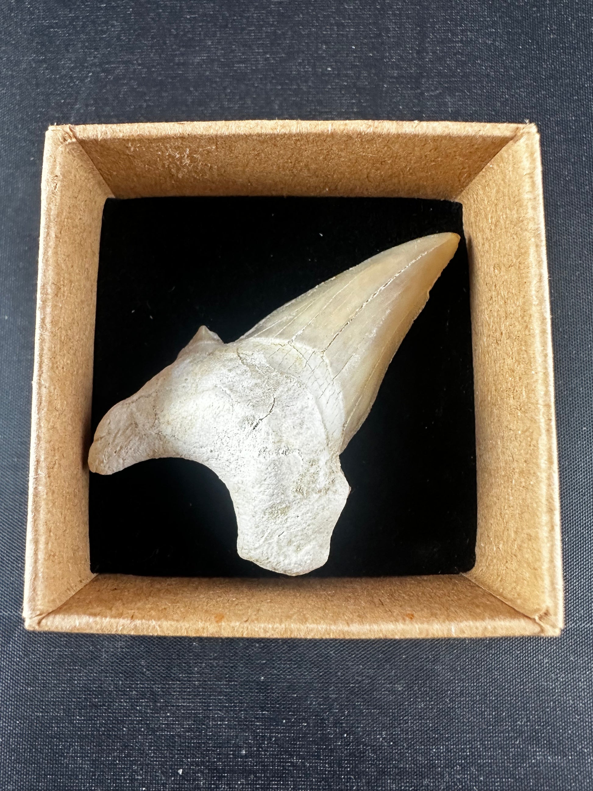 These Shark Teeth are from the Otodus species of shark that patrolled the seas of Morocco around the Eocene period ~ 56 to 33.9 million years ago. When a sharks’ teeth become worn the predator will ‘shed’ these teeth, and these will be replaced with new sharper, stronger teeth. However, unlike humans, Sharks are known for re-shedding hundreds of teeth on a regular basis, which makes them a fruitful find with fossil hunters.